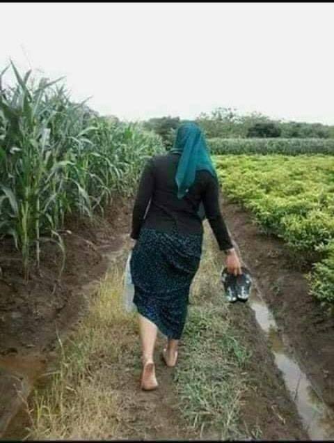 تسير حافية بين الزروع