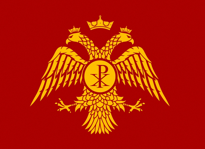 وعلم الدولة البيزنطية كان عبارة عن اللون الأحمر يتوسطه الشعار الإمبراطوري للباليولوج ،