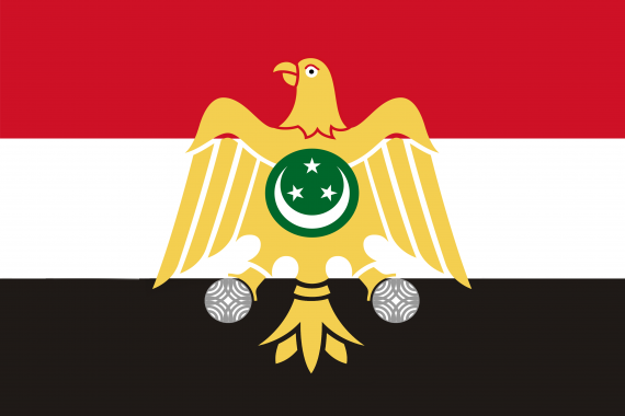 وهو علم ذا ثلاثة ألوان “أحمر وأبيض وأسود” ويتوسطه شعار الجمهورية (النسر)، لكنه نسر عريض الشكل وله درع أخضر