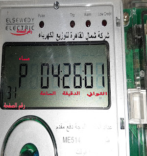 1- التوجه إلي العداد وبدون وضع الكارت أضغط على زر القائمة وتابع الصفحات